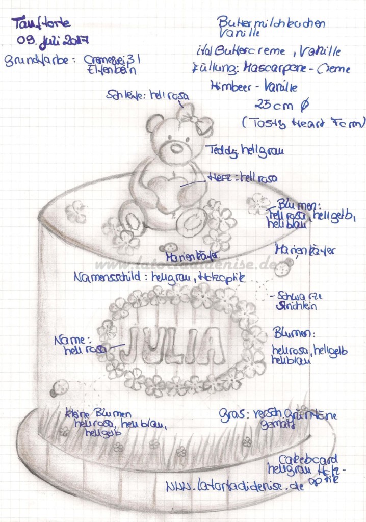 Gott sei Dank ticken Nina und Sandro, in solchen Sachen, so wie ich. Nicht das mir die traditionellen Tauftorten nicht gefallen. Torten, bei denen mir selbst von Anfang an die Deko zusagt und ich frei modellieren darf, machen mir immer mehr Spaß.